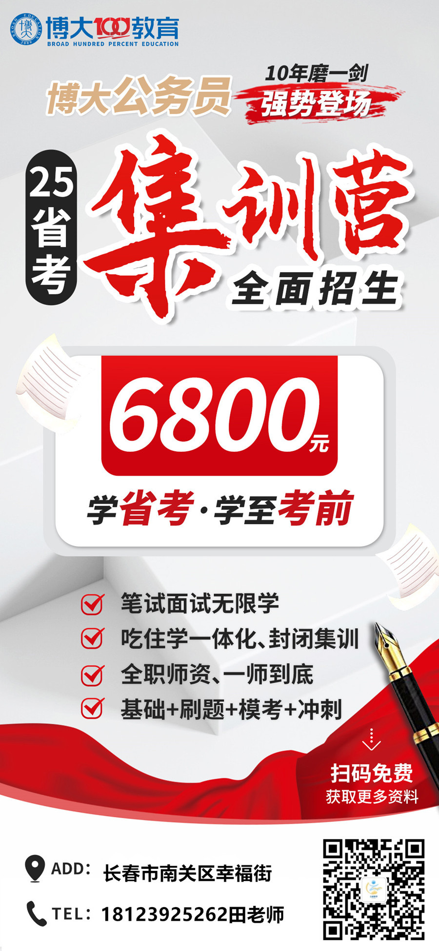 博大教育為學員設置公務員考試集訓營培訓班,行測考點點睛和模塊解析,以及考前分析課,以及申論的考點點睛和模塊解析,以及考前分析課,穩步推進,明確公考題型設置,把握基礎知識,專項針對性講解,實現重難點突破,明確考試大綱,實現考點全覆蓋。